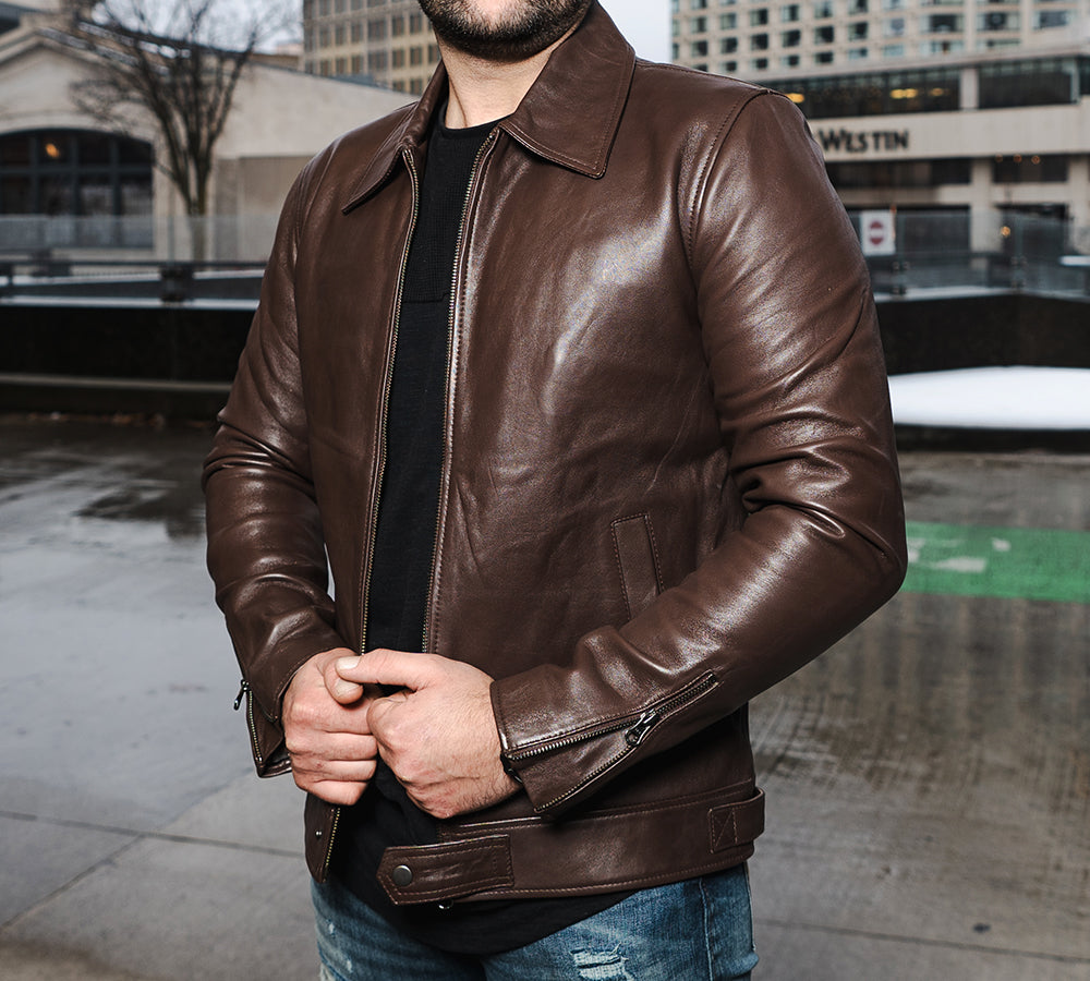 Looking to spruce up your evening attire? Purchase this stunning Plain brown leather jacket with collar for many praises. Brown jackets are quite popular since they are the most trendy choice. This wonderful leather jacket has been manufactured with top-grain leather and features a zipper closure, spread collar, and open hem cuffs in order to give attire a stylish appearance. It has one pocket inside and two side pockets outside for the storage of valuables.