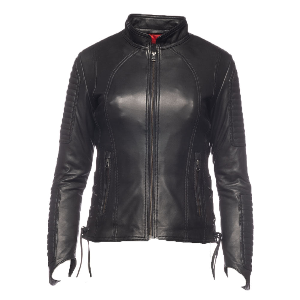 There is nothing more timeless than a black leather jacket with its bold look, which can instantly make you feel more confident. Maxine Noir Leather Jacket With Side Lacing is crafted with full-grain leather giving it a perfect texture. An interior lining of satin polyester has been added to the jacket to make it more comfortable for you. With its stand-up collar and zipper closure, the jacket not only enhances the overall look of the jacket but also adheres to current fashion trends. This Maxine Noir Leather Jacket With Side Lacing is available in a mesmerizing black color and has a full-length sleeve which will keep you warm during the winter. It also has open hem cuffs that will keep your wrists warm during the cold months.
