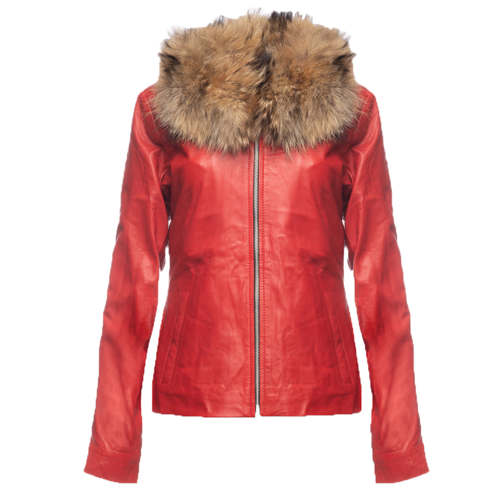 Palmyra Rose Red Leather Jacket With Fur Collar
